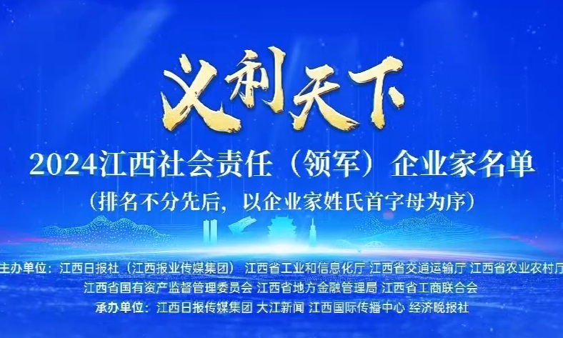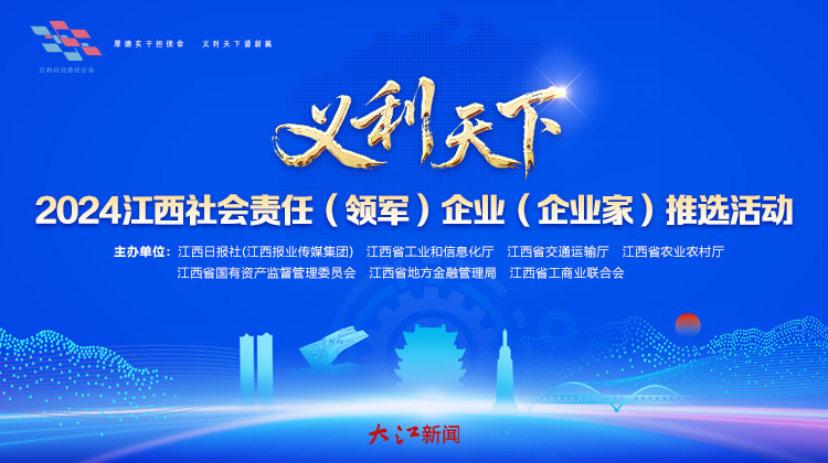 “义利天下——2024江西社会责任(领军)企业(企业家)”推选活动,立足江西高质量发展与现代化建设宏伟蓝图,以弘扬“厚德实干、义利天下”的赣商精神为内核,以表彰在新质生产力发展、绿色低碳转型、改革创新、诚信纳税、扶危济困、乡村振兴等领域履责突出的领军企业及企业家为核心目标,是我省推动企业社会责任体系建设、凝聚高质量发展合力的重要举措。