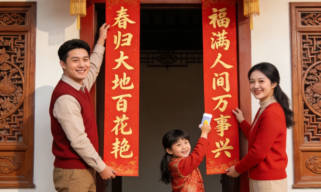 过年春联怎么贴?先贴横批再贴竖联,最后才贴福