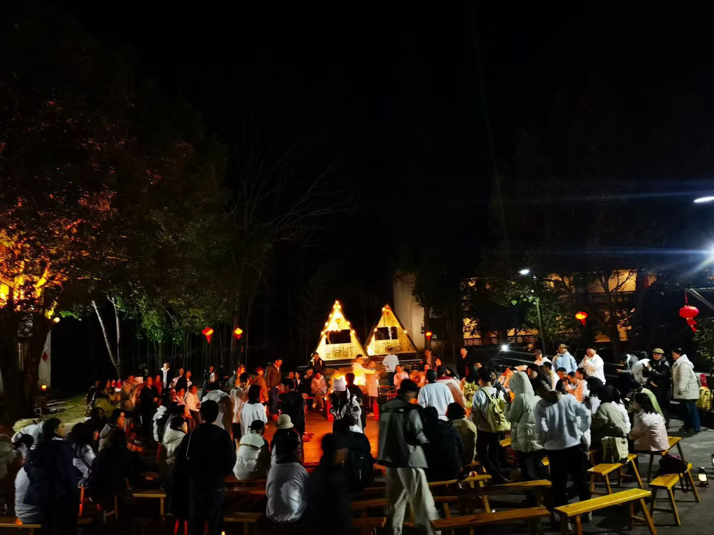 2月6日晚,马灯摇曳,篝火点燃,一场特别的“认亲仪式”,奏响文学年的序曲。在温暖的光晕里,新老驿友们拉着板凳围坐成圈,自我介绍声或腼腆或爽朗。有人分发家乡的茶饼,有人递过酥脆的烫皮,简单的食物消融陌生、联结情谊。“祝《星火》更红火!”“新年快乐,马年大吉!”……火光在一张张笑脸上跃动,质朴的祝福在掌声间响起。每当一名驿友言毕,身着迷彩服的安全员“斑马教官”许龙飞便会敲响那面古朴的铜锣。“铛——铛——”锣声在深山夜色中稳稳荡开,回响绵长。