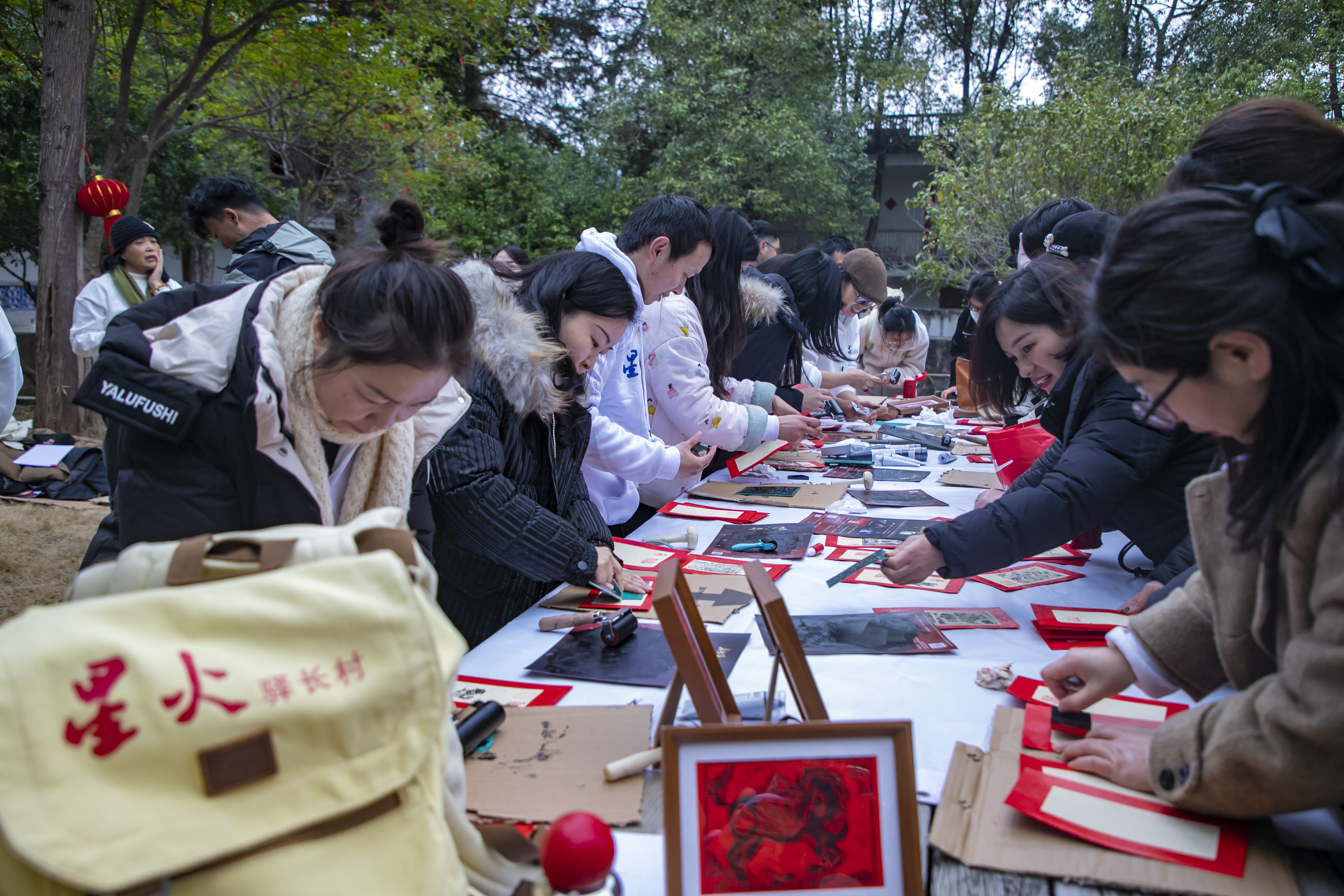 腊梅缀在石板灰色的枝头上,点点烟红,喜庆又灼人。葱茏如巨伞的大榕树下,旧友重逢的欢笑、新友初见的寒暄,让这座满是怀旧风情的小院,春意愈发升腾。动人的年味从星光缀空直到晨光初现,仍不肯散去……