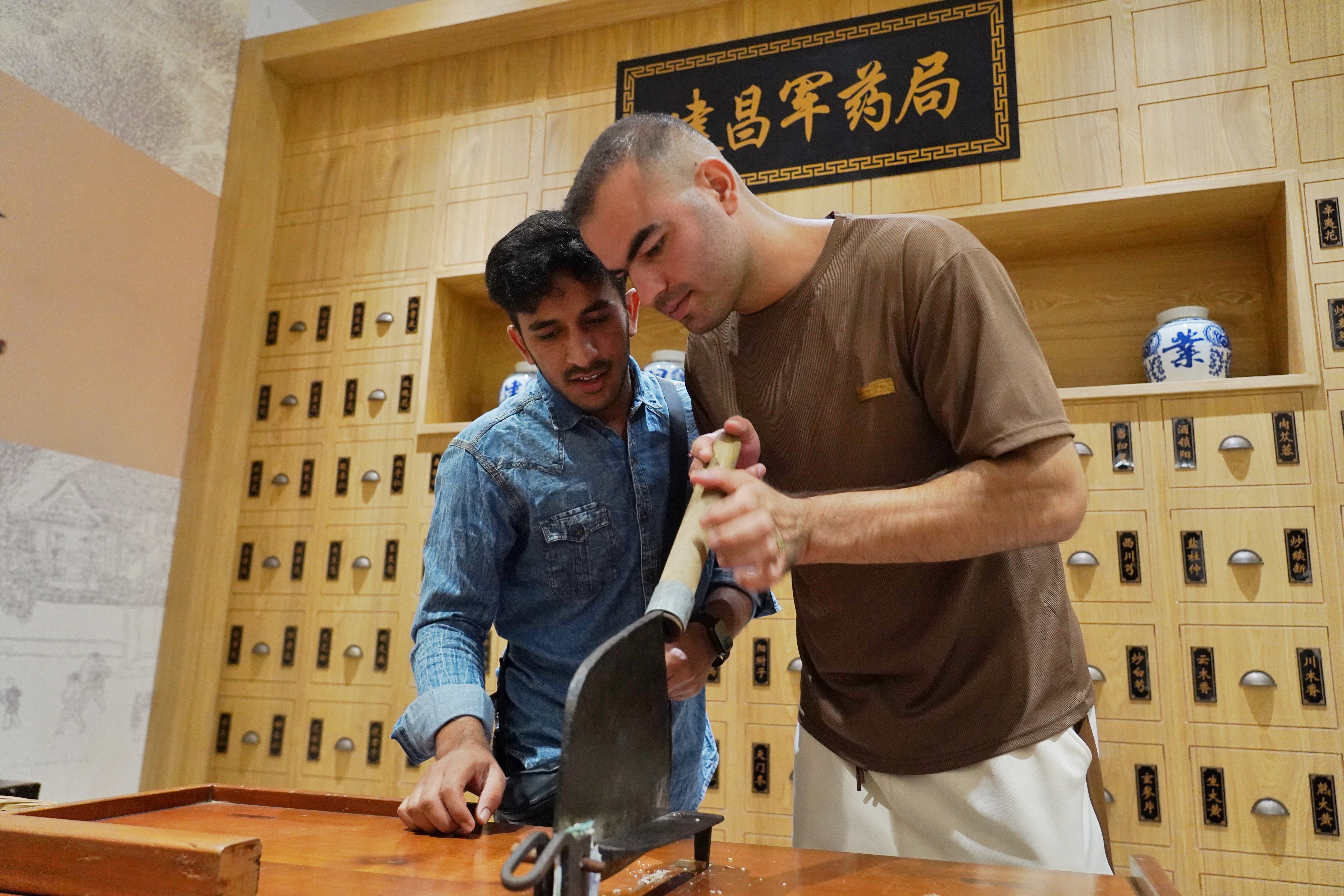 ▲外国留学生体验中药炮制。