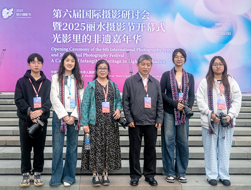 工作室师生在丽水摄影节“光影里的非遗嘉年华”开幕式现场 本届摄影节以“新质创造 万象竞生”为主题,呈现开放性全民共享、国际性提质扩面、学术性持续攀升、产业性深度探索和多元性交融共生五大特色亮点。作为2025丽水摄影节的重要展览之一,“万象镜城”国际高校师生作品展汇聚来自伦敦艺术大学、华盛顿大学、中央美术学院、中国美术学院、北京电影学院、中国传媒大学、鲁迅美术学院等70所国内外高等院校的2000多幅摄影作品。江西科技学院作为江西省唯一入选摄影节的高校代表,参展作品拥有独立展陈单元,获得在场观展嘉宾、游客群众的广泛好评,充分展现该校学子的青年影像新质创造力与摄影艺术造诣。