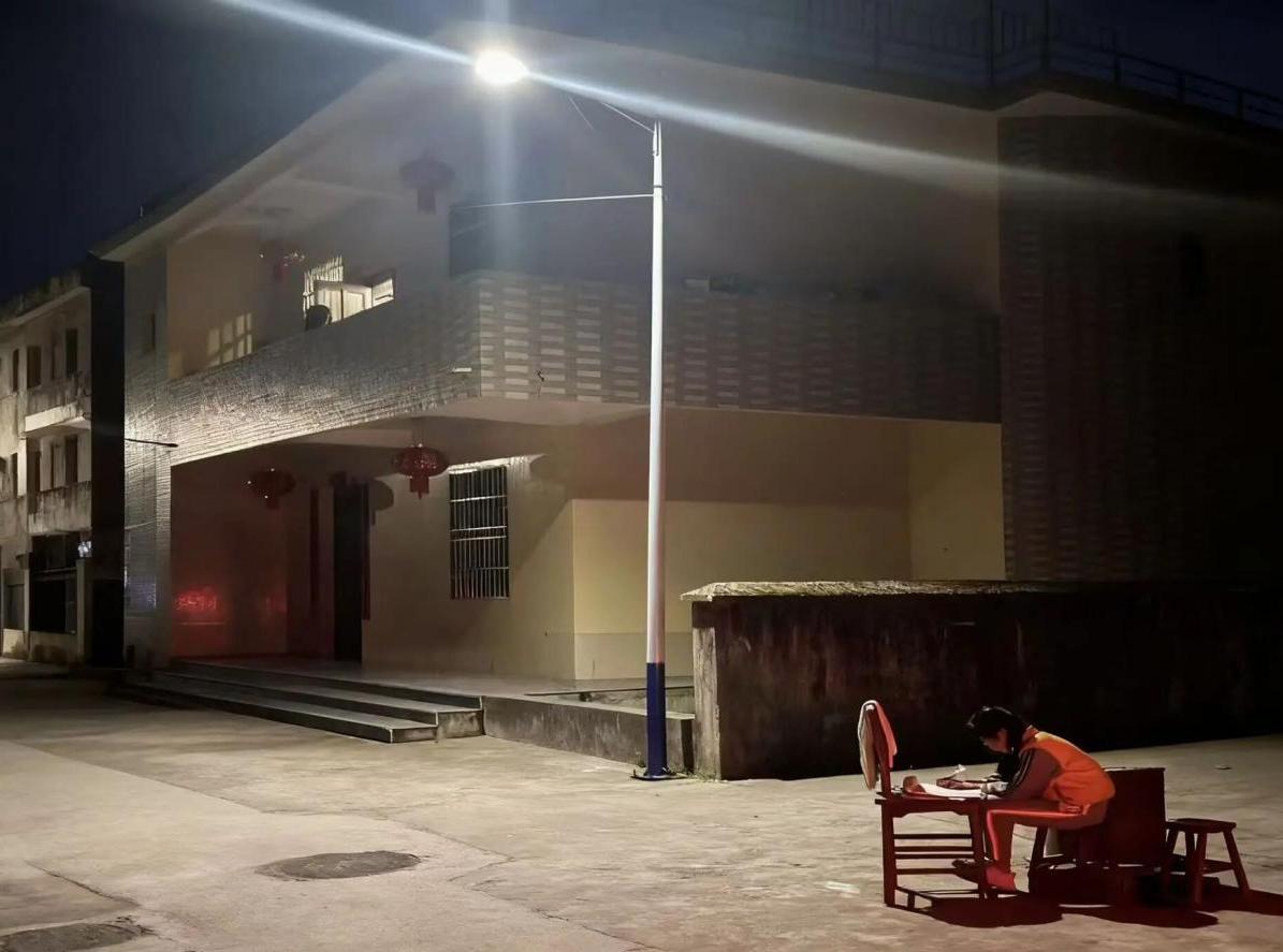 ▲今年5月初,小妍在路灯下伏案疾书。摄影|蒋诗奇