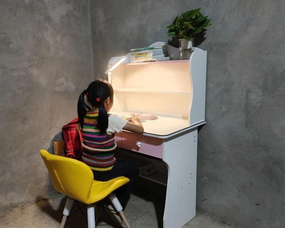 ▲小美站在崭新的书桌前,喜不自禁。