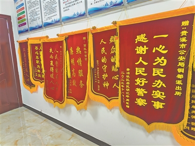 “人民卫士,破案神速”“热情服务,廉明高效”“群众的贴心人,人民的守护神”……走进翁红华在贵冶社区的警务室,只见一面墙上挂满了锦旗。这些锦旗背后,是一个个温暖人心的故事——有连续多日坚持进山寻找八旬老人的担当与执着,也有创新使用“一壶茶调解法”耐心调解邻里纠纷化干戈为玉帛的智慧。如今,在翁红华与社区共同努力下,贵冶社区也从一个老旧社区转变为平安文明的模范社区。