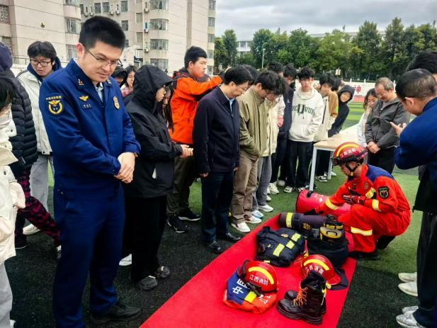 消防器材展示区俨然一座生动的微型“安全科技馆”。消防员们依次向师生演示了灭火器、消防服、水带等关键消防器材的操作方法。他们用专业的器材介绍和操作演示让在场师生迅速了解到消防器材基本知识及其在消防救援中发挥的重要作用,也为消防安全趣味运动会的顺利开展打下了良好的基础。