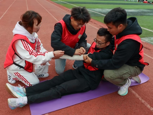 凉风带着赛场边的欢呼,为“紧急救援”学科竞赛注入紧张而热烈的气氛。这不仅是一场速度的比拼,更是将专业转化为实战能力的综合考验。赛道上,队员们反应迅速、配合默契,“伤员”被稳妥安置后,有人迅速完成止血包扎,有人精准实施固定搬运,在20米疾行中既保证救援速度,又守护“伤员”安全。每一个环节的严谨操作,都展现出应急救援的专业素养与团队的责任担当。