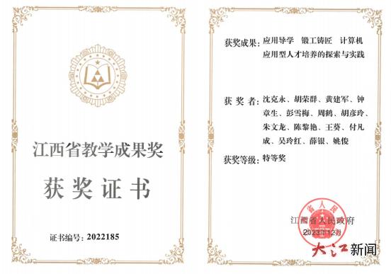 在教学成果奖项方面。近年来,拥有国家级一流课程2门,省级一流课程14门,省级精品在线课程、共享育人课程及一流课程40门次,省级课程思政示范项目4项、省级青年教学成果奖3项、省级教学成果奖5项,尤其2023年获江西省高等教育类(本科层次)教学成果奖特等奖1项,是全省民办高校唯一获得特等奖的高校。近三年,学生在大学生数学建模竞赛、电子设计竞赛、机器人大赛、ACM-ICPC等省级以上学科竞赛和“互联网+”大学生创新创业、挑战杯、职业规划等大赛中获奖7700余项。