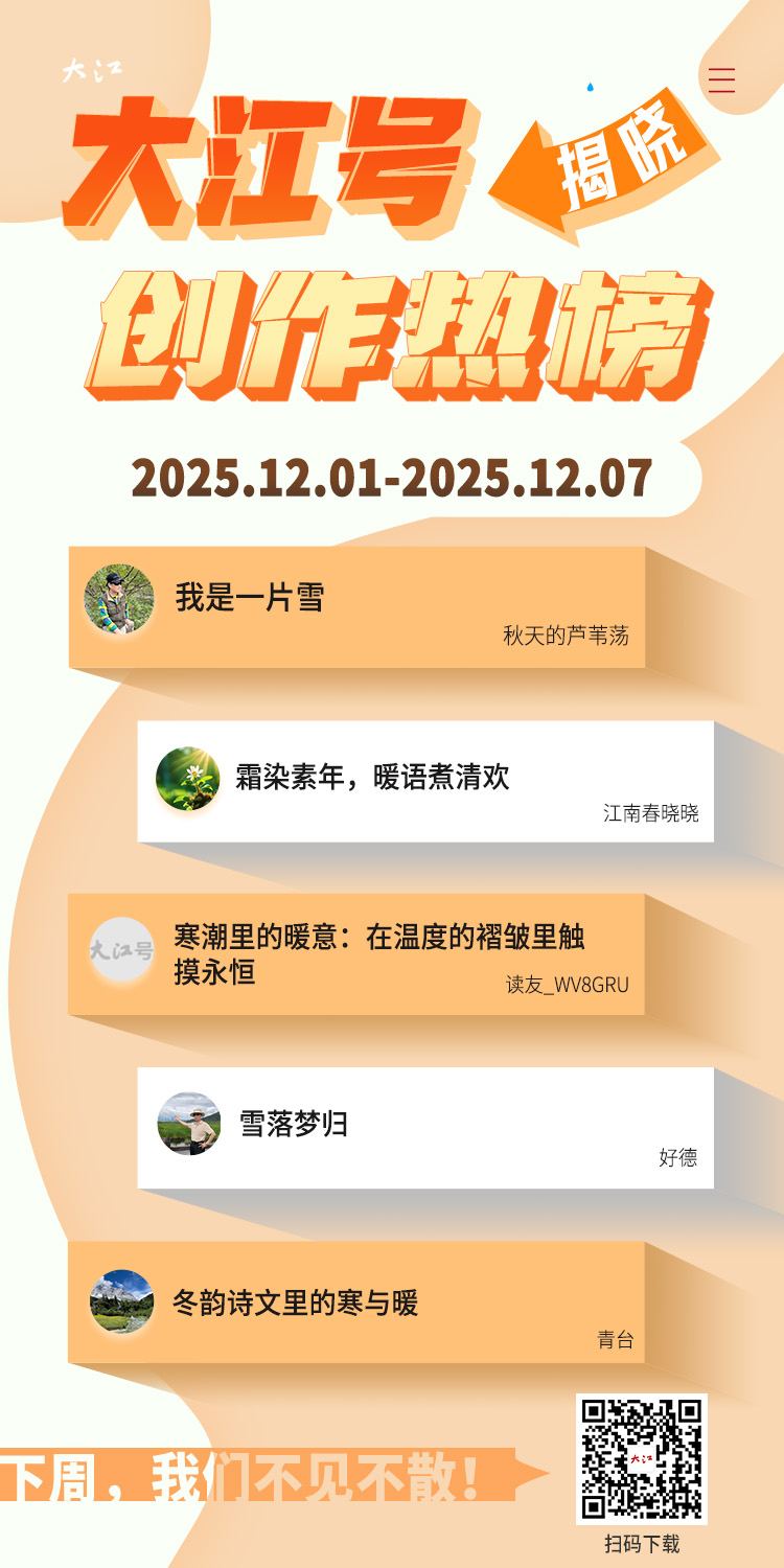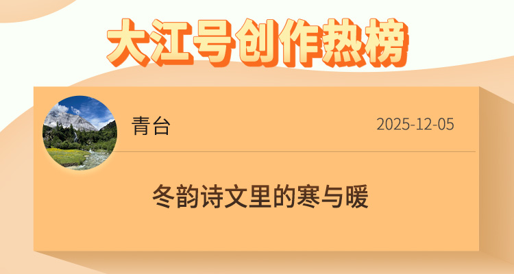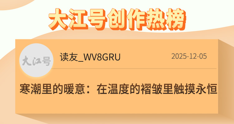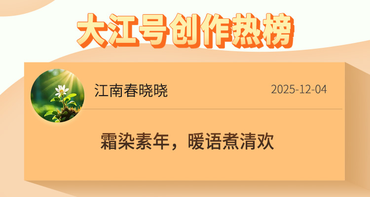 冬日常裹清寒,却总在笔墨间藏满温柔。小编精选了大江号创作热榜的5篇文章,皆以冬日景致为底色,落笔于霜雪清韵,走心于冷暖交织,于静谧冬景中铺陈细腻心绪,于清寒岁月里打捞温情暖意。字里行间满是冬日独有的治愈与深情,邀你共品冬韵里的寒暖相依与岁月清欢。
