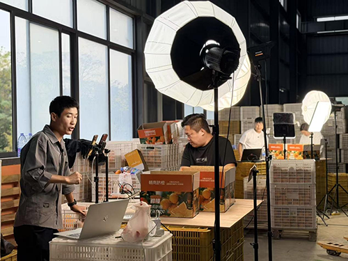 “家人们,这是咱西牛现摘的脐橙,皮薄多汁”这样的吆喝声在星橙中心此起彼伏。西牛镇紧抓数字经济机遇,吸引了20余家直播团队扎根产地,将直播间直接设在分拣区与仓库,实现从“枝头”到“舌尖”的可视化直达。直播带货创造了日均销售1万斤、出单10万票的亮眼业绩,单场最高观看量突破6万人次。这种模式不仅极大拓展了销售渠道,其预售机制更能精准匹配市场供需,稳定果农收益,为产业持续注入新活力。