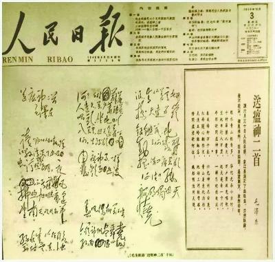 1958年6月30日,《人民日报》刊发通讯《第一面红旗——记江西余江县根本消灭血吸虫病的经过》。毛泽东同志十分欣慰:“读了六月三十日的《人民日报》,得知余江县消灭了血吸虫。心绪难平,浮想联翩,睡不着觉。早晨微风吹拂,朝阳照耀窗前,遥望南国天空,欣然提笔作诗。”