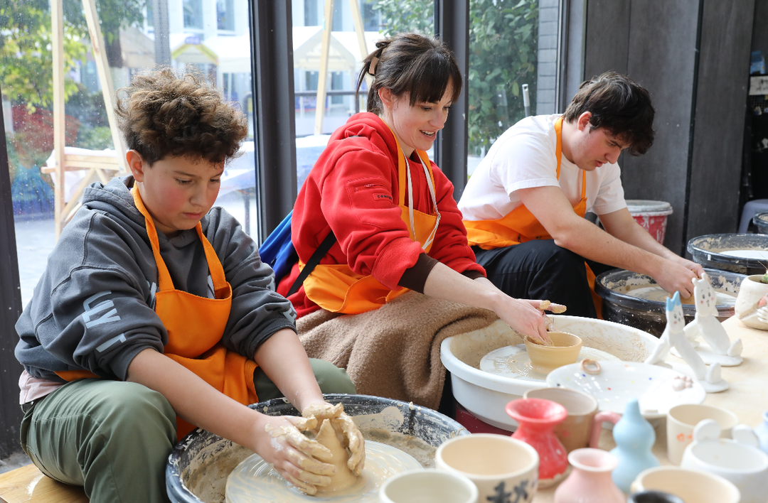 在滕王阁前,研学团成员聆听了《滕王阁序》的千古佳话,登楼远眺赣江两岸风光,在飞檐翘角间感受中国古代建筑的艺术精髓,纷纷惊叹“诗文中的美景真实存在”。在景德镇,研学团走进中国陶瓷博物馆、古窑民俗博览区,探寻千年窑火的传承密码。大家观摩手工制瓷技艺,从拉坯、施釉到绘画,亲手体验陶瓷制作的乐趣,深刻体会“泥与火交融”的匠心精神,对中国非遗技艺的精湛赞叹不已。
