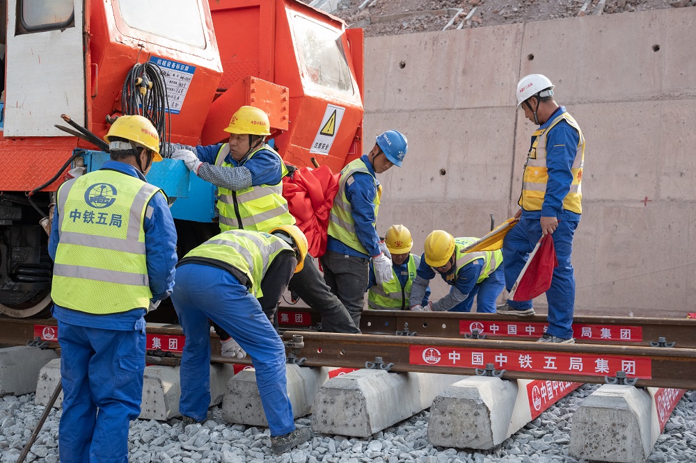 值得关注的是,瑞梅铁路江西段是典型的山区铁路,桥隧比高达73.86%,需穿越赣南断裂带、溶洞群等复杂地质区域,沿线还广泛分布稀土矿采空区、人为坑洞及危岩碎石,施工安全风险与组织难度极大。此前,施工团队已成功攻克多项技术难关,全线最长桥梁绵水特大桥完成架梁、重点控制性工程华星村隧道实现贯通,为铺轨工作顺利开展筑牢了基础。
