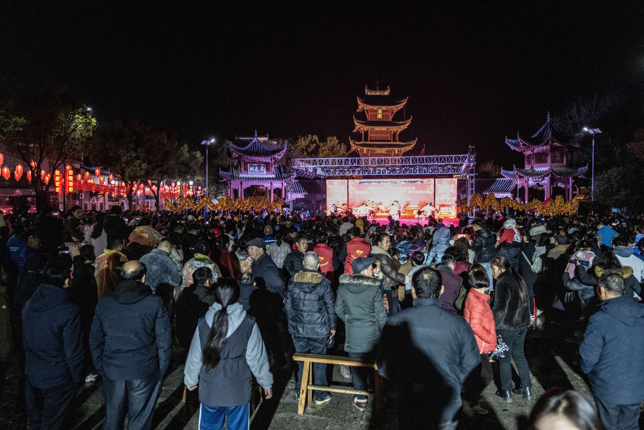 《在乡音与灯火中,寻回年的味道》村里的微信群一声“叮咚”,那条“村晚”兼“农产品展销会”的消息,像一块石子投入平静的湖面,沉寂许久的“简家村微信群”瞬间活了过来。2月6日,腊月十九,我裹紧外套走向钟鼓楼广场,寒风扑面,心里却涌动着久违的暖流——那是关于“年”的集体记忆被唤醒的感觉。童年记忆里,年味是五感交织的实在:灶膛火光、捶糖声响、腊肉香气。后来,年味简化成一张归乡车票,是车厢里混杂的乡愁与疲惫。再后来,万物皆可快递,祝福变成群发,那份让人坐立不安的“年味”,却悄悄淡去了。今夜,一切正在归来。最打动我的,竟是下午那场“山货大集”。土蜂蜜、葛根粉、鲜菌菇……人们不再沉默扫码,而是俯身细看、亲手挑选。“这笋是后山的吧?”“多给你抓点,自家晒的!”买卖之间,流动的是乡音、体温和扯不完的家常。这喧嚷亲密的场景,竟比任何超市都更有“年”的质感——我们渴求的,从来不只是年货,更是人与人之间那份热气腾腾的联结。夜幕降临,鼓声雷动,金龙瑞狮翻腾起舞。台上没有明星,只有熟悉的乡邻:退休教师、返乡青年、街坊夫妻。歌声或许质朴,舞步或许生涩,可那份从心底涌出的真挚,却有着直抵人心的力量。方言表演的《抵制高价彩礼》,让新风尚在笑声中扎根;红色剧目里的乡音铿锵,让长辈们眼中泛起光芒。我忽然明白:文化之根,从未远离,它就在这些“民星”为家乡放声歌唱的每一个音符里。寒风依旧,我却不觉冷。台上台下,掌声喝彩汇成一片。直播间里,评论飞速滚动,挤满了游子用方言喊出的思念与祝福。我看见邻家阿婆笑弯了眼,孩子骑在父亲肩头欢呼,年轻人高举手机:“看,这就是咱家的‘村晚’!”这不是追逐流量的表演,而是一场召唤归家的仪式。它让我们从虚拟世界抽身,重新用双脚丈量这片土地,用双眼确认彼此的笑容,用双耳聆听真实的乡音。曲终人散,人们提着年礼,脸上红晕未消。我握着一袋带着泥土清香的冬笋,心中豁然。年味何曾远离?它就在我们对团聚的期盼里,在面对面交换的体温与笑语间,在这些平凡人为家乡点燃的寒夜灯火中。这一夜,我的古镇告诉我:最浓的年味,是人的相聚;最深的乡愁,终要在乡音的共振里安放。(简格民)