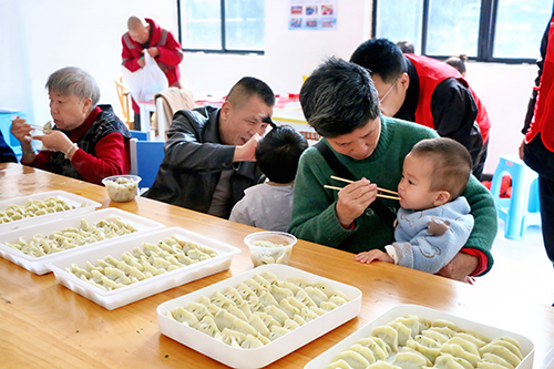 本场文明集市共分送“福”、互动、便民三个志愿服务区域。在送“福”区域,来自市书法家协会、市国资委、赣州城投集团的书法文艺志愿者们刚摆开笔墨纸砚,闻讯而来的群众便纷纷围拢,书法文艺志愿者们凝神挥毫,寓意美好的春联跃然纸上,把对新春的期盼、对美好生活的祝愿融入笔墨;赣州城投集团的志愿者们则穿梭其间帮忙铺纸研墨、晾干,将写好的春联送到居民手中,现场其乐融融、热闹非凡,洋溢着浓浓的年味。在互动区域,志愿者们耐心示范,帮助社区大人、小孩剪纸;与社区居民一起包饺子,社区居民围坐分享,现场其乐融融。在便民区域,理发、刀具打磨、健康测量等免费服务有序开展,此外,赣州城投集团与社区的志愿者们还带着写好的春联、“福”字、饺子等送到社区内行动不便的居民家里,免费为居民上门维修灯具和开关,让社区居民倍感温馨。
