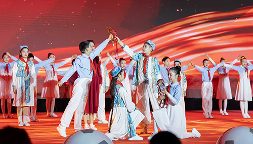 ▲开营仪式现场,两地少年同跳一支舞。克孜勒苏融媒体中心全媒体记者熊宣然摄