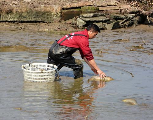 2月12日,金溪县全平家庭农场稻鱼共生示范基地,养殖户正在捕鱼,准备供应节日市场。近年来,当地立足生态资源优势,引导农户发展“稻鸭、稻鱼、稻虾、稻蛙”多元生态种养模式,实现一水两用、一田双收。特约通讯员 邓兴东 摄
