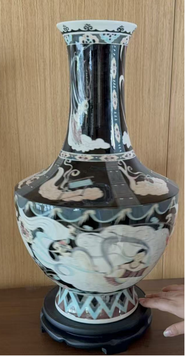 “这四件作品,以瓷为媒,借千佛、飞天等形象,搭配窑变、釉下五彩等技艺,既展现工艺之精,更传递对敦煌文化的传承。”史良与魏荣荣说,让敦煌遗韵与瓷艺风华永续,是他们共同的守望。