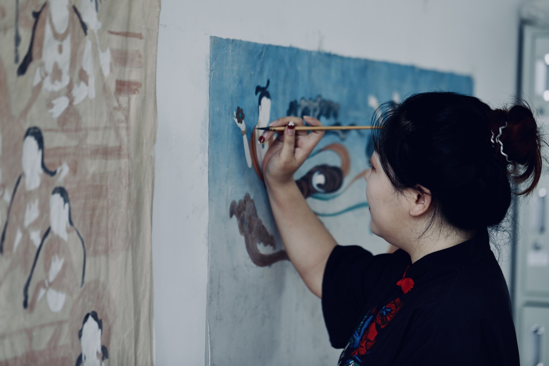 “敦煌壁画是我们长久的灵感源泉。从纹样到肌理,每一件作品都要慢慢打磨。”魏荣荣说。