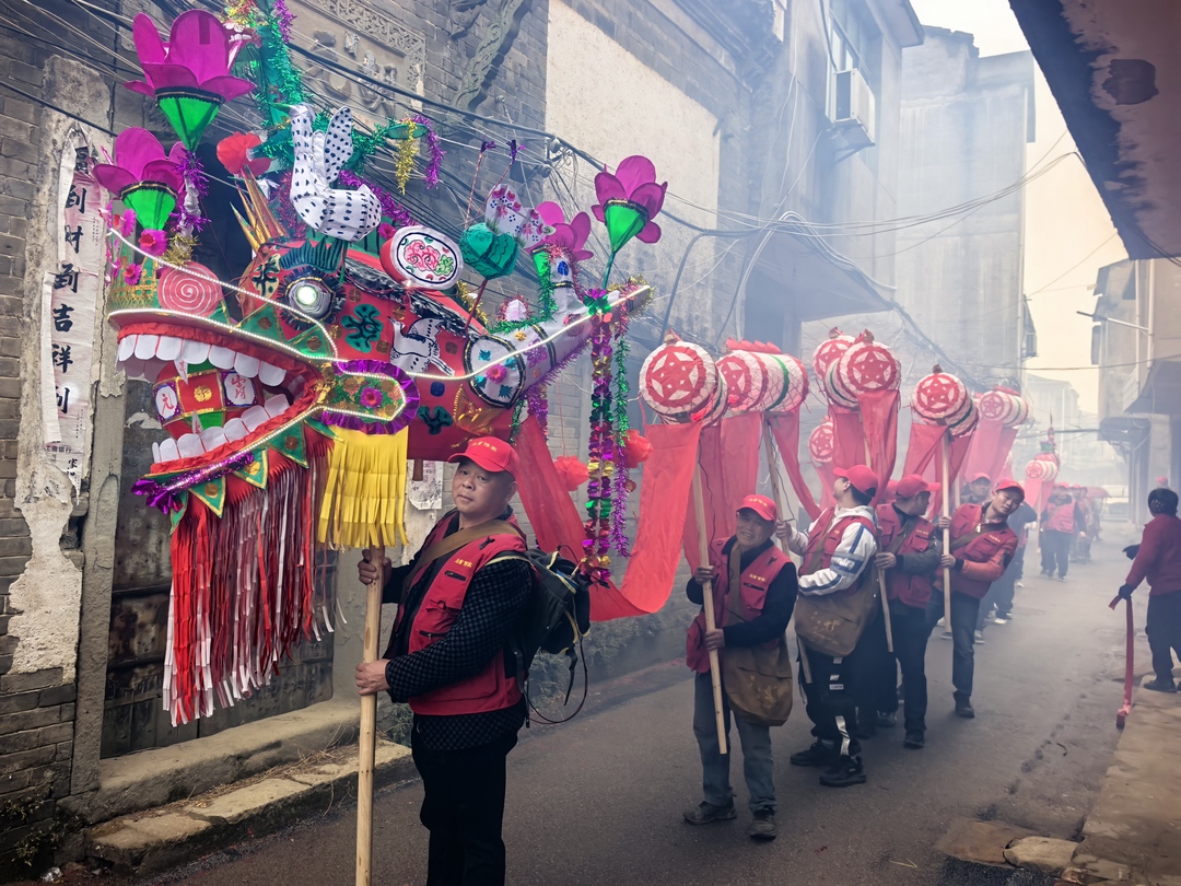 暮色四合时,仙亭村文化广场的灯笼次第亮起。