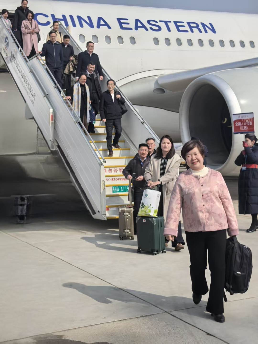 大江新闻讯 江西日报特派全媒体记者魏星、宋思嘉报道:春潮涌动,万象更新。3月3日上午,出席十四届全国人大四次会议的在赣全国人大代表满怀热忱,乘机抵达北京向大会报到。尹弘、叶建春等同机抵达。