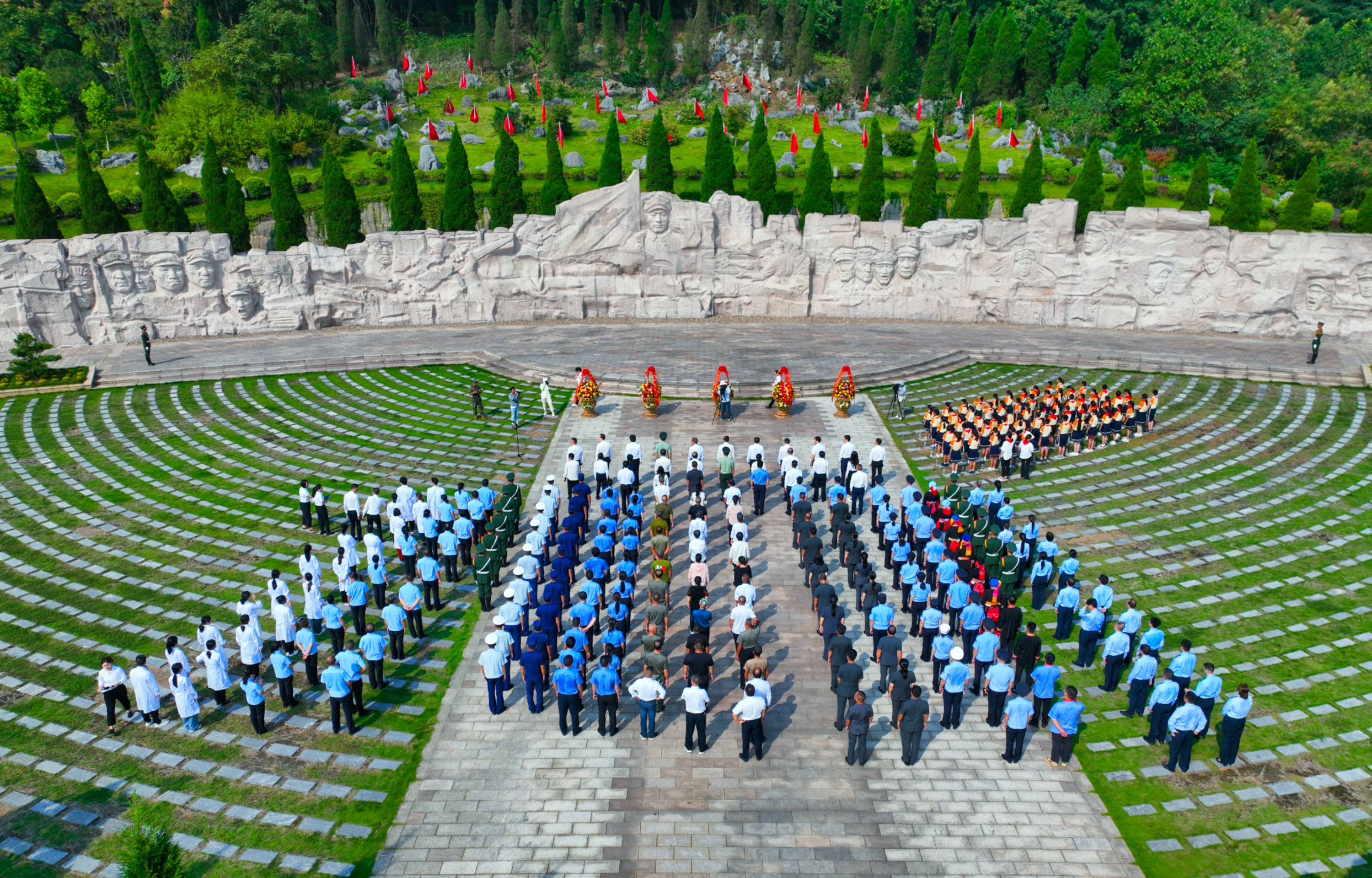 ▲党员干部在红军长征湘江战役纪念园缅怀革命先烈的丰功伟绩 摄影丨邓琳、王喆