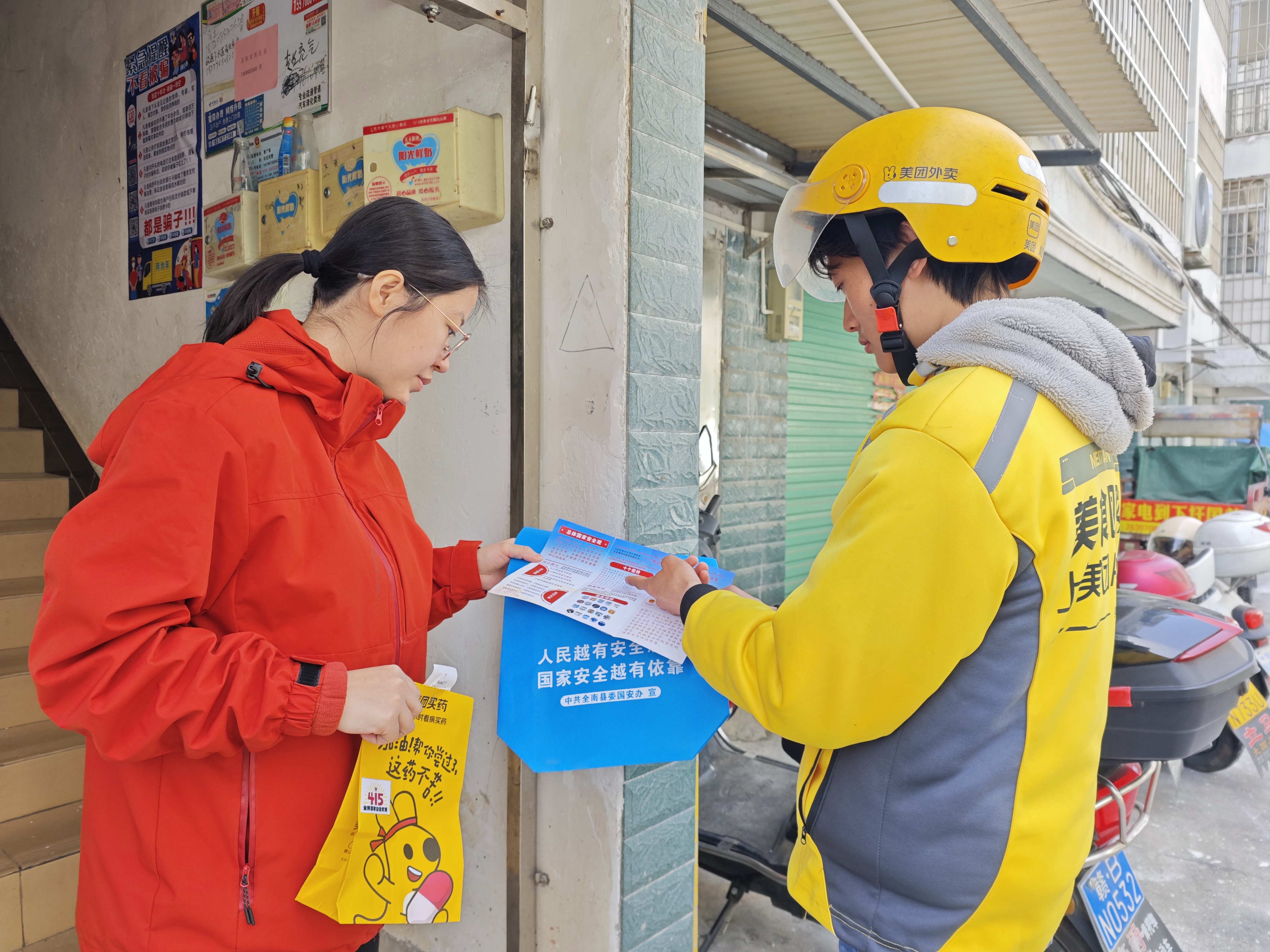 外卖小哥化身“兼职网格员”,走上街头开展国家安全宣传。