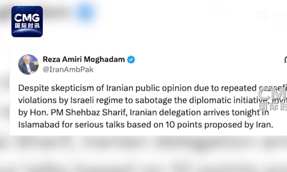 伊朗驻巴基斯坦大使删除“伊朗代表团9日晚抵达伊斯兰堡展开严肃对话”的帖文