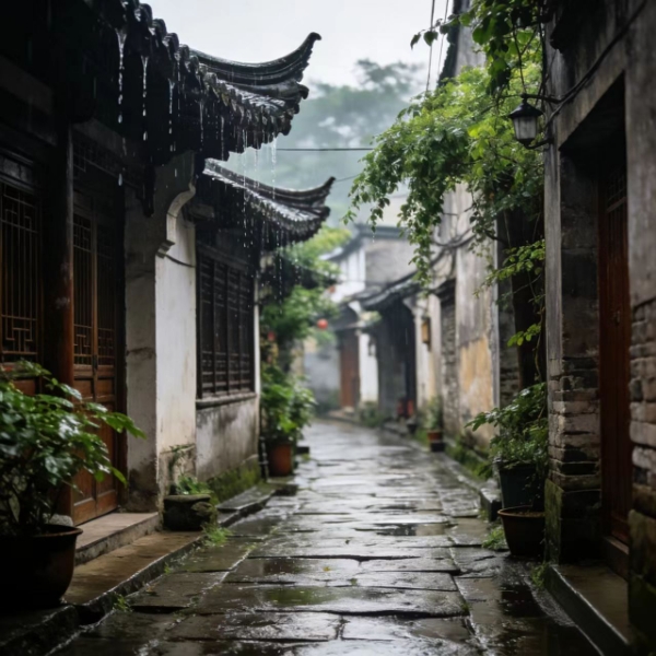 雨后的巷子很静,踩过青石板的湿痕。檐角滴下的水声,是独属于慢时光的清宁。