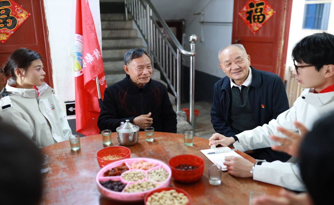 随后,刘禄生老人带领宣讲团成员们继续走访村里其他红军后代。刘禄生一路向我们介绍村里近几年的变化,他还向我们介绍了村里的银发志愿服务队,老人们利用退休时间主动服务乡亲,大家的精神面貌很好,宣讲团成员们真切感受到,长征中无私奉献的精神一直留在这片红色土地上,代代相传。